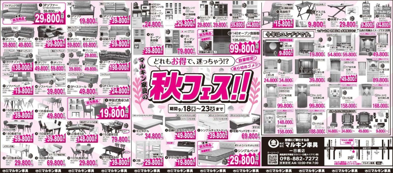 マルキン家具のマジ価格‼(10/10~10/13)
