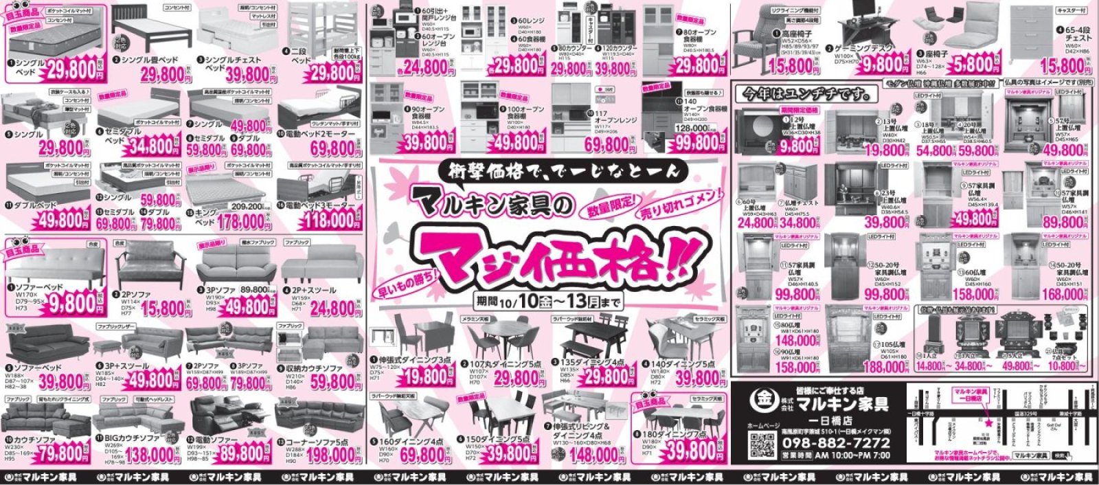 マルキン家具のマジ価格‼(10/10~10/13)