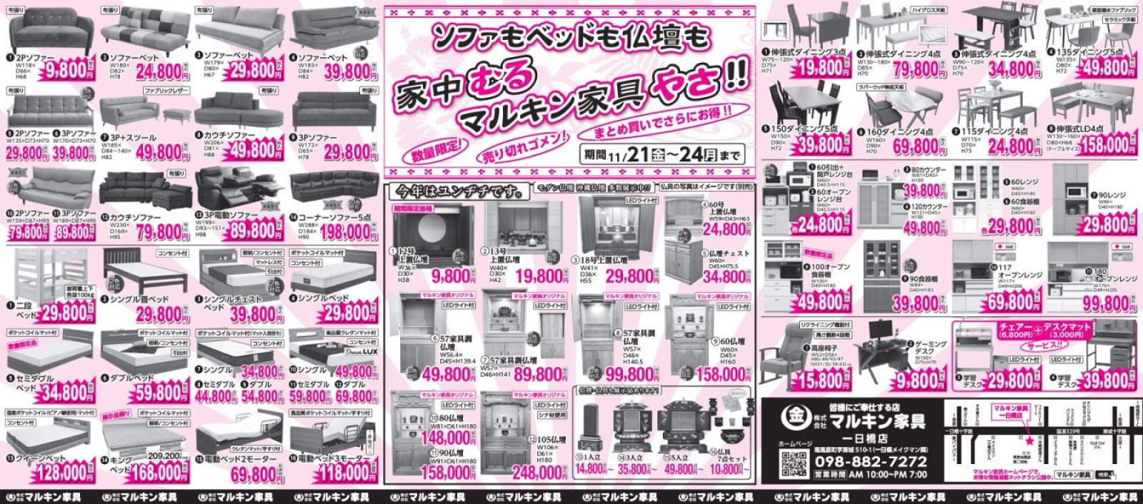 家中むる、マルキン家具やさSALE!(11/21~11/24)