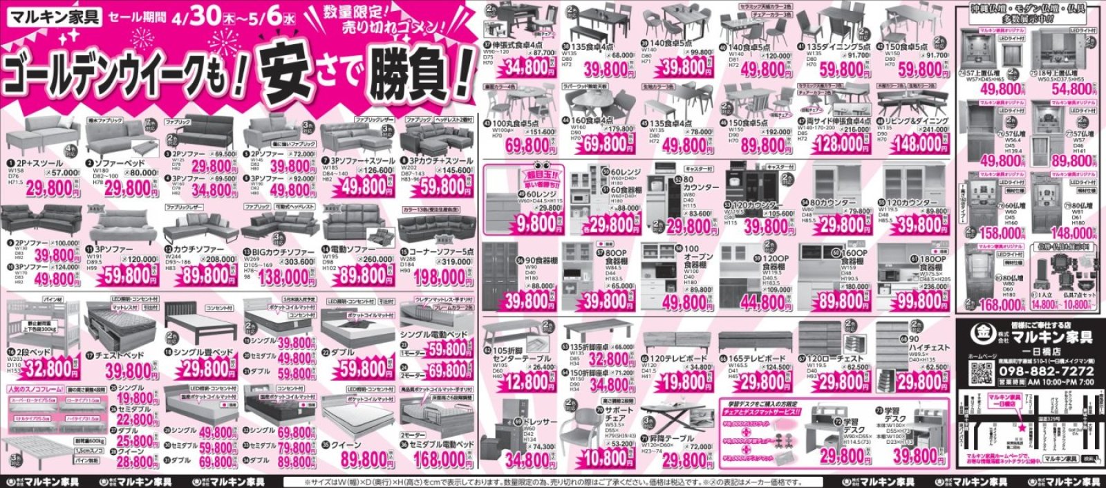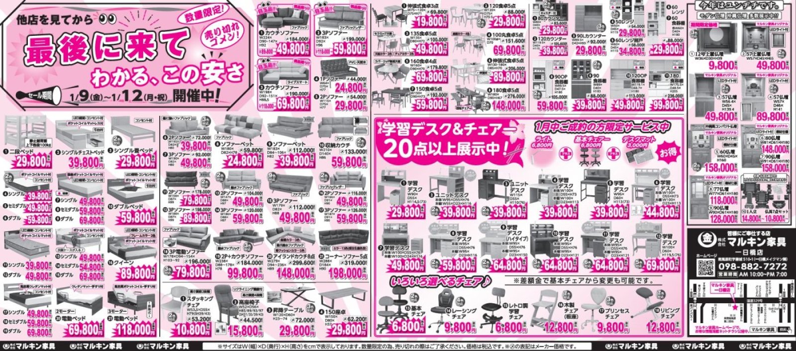 マルキン家具へ急げ~!!お買い逃がしがないよう、ご来店お待ちしております。